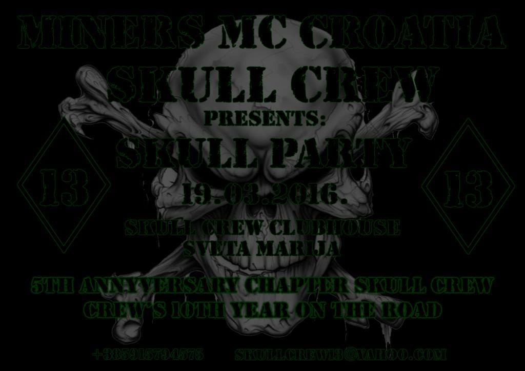 MC Miners Skull Crew organiziraju 5. po redu Skull party. Pozivamo članove MK Orlovi koji su zainteresirani da 19.03.2016. u 20 sati dođu u caffe bar "Petica" u Maloj Subotici u 20 sati odakle krećemo za Sv. Mariju. Vidimo se.Winter Party MK Ren Ban 2016.